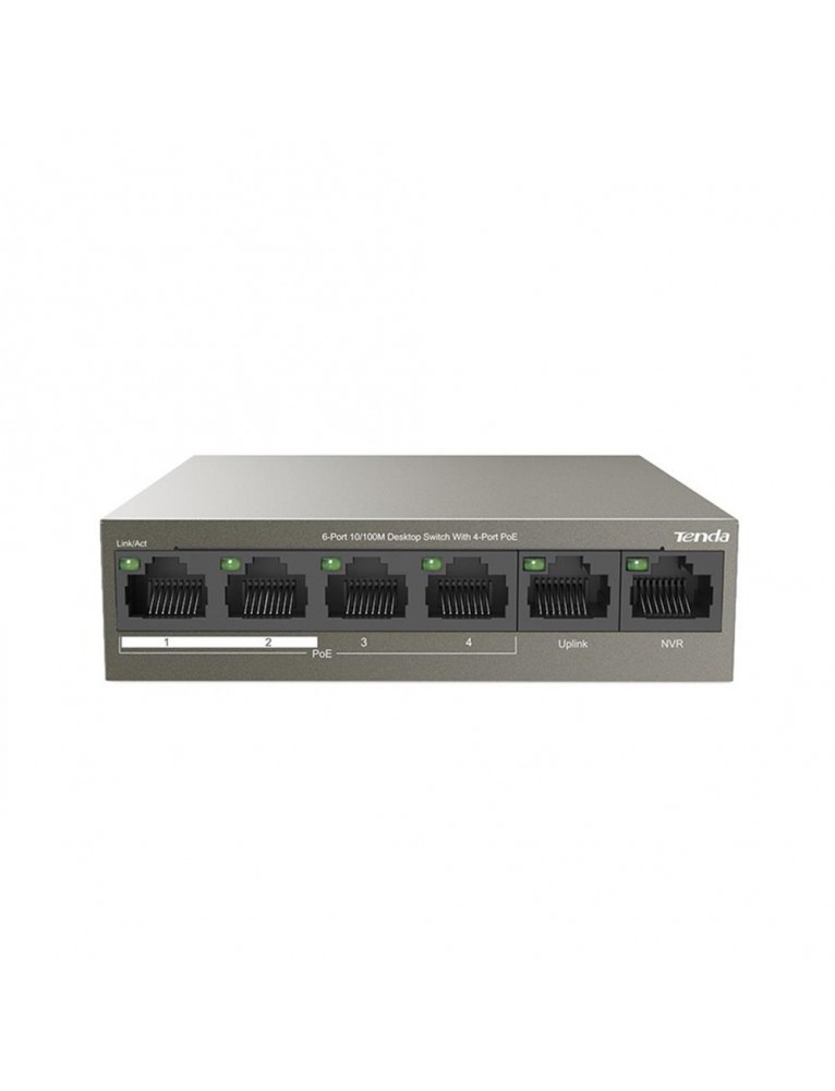 Tenda TEF1106P 6 Port 4 Port Poe+ 10/100 + 2 Port Uplink Switch Çelik Kasa Rack Mount